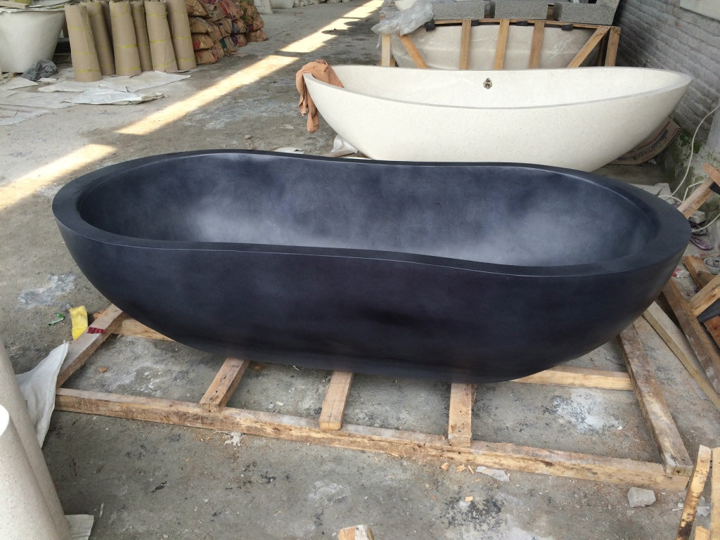 Diese Wanne wird von Hand aus Terrazzo Stein in Bali gefertigt