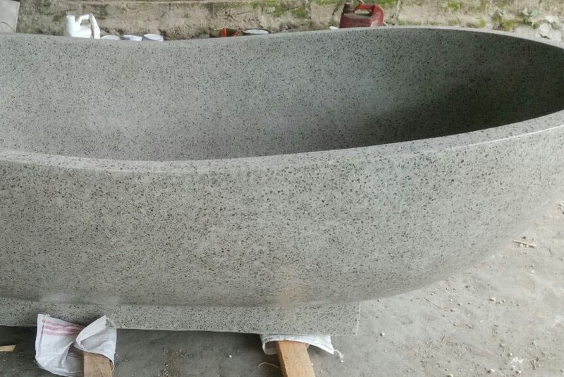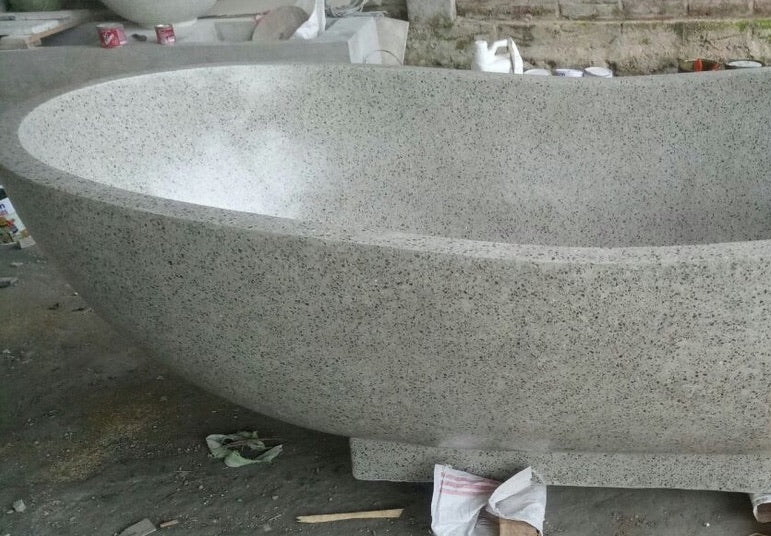 Diese Wanne wird von Hand aus Terrazzo Stein in Bali gefertigt