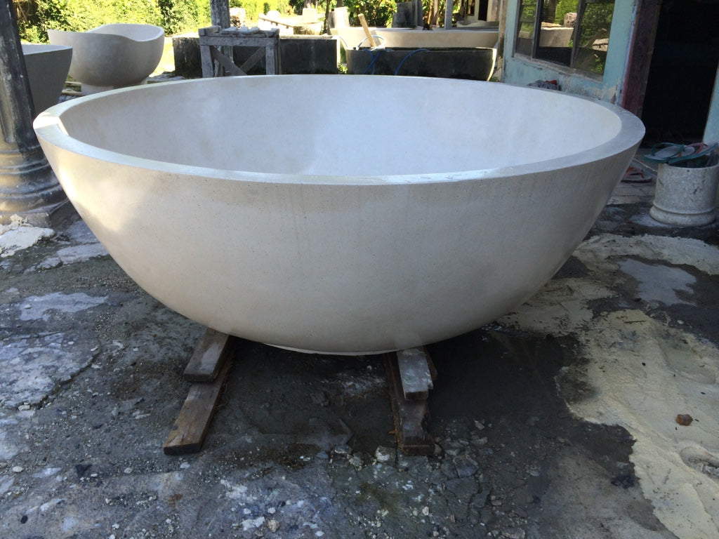 This tub is made by hand from terrazzo stone with cement in Bali,