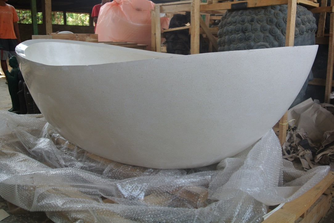 This tub is made by hand from terrazzo stone with cement in Bali,