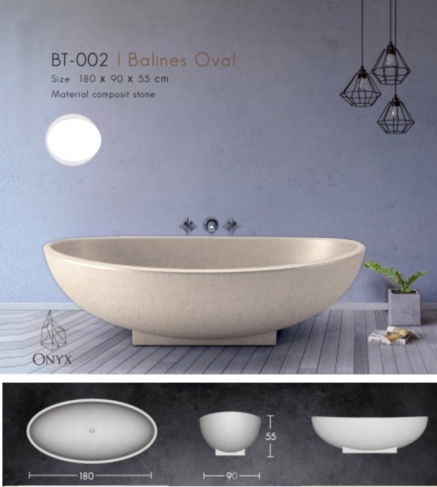 This luxurious oval freestanding bathtub, handcrafted from terrazzo stone and cement, is perfect for creating a spa-like experience in your garden, pool area, or bathroom.