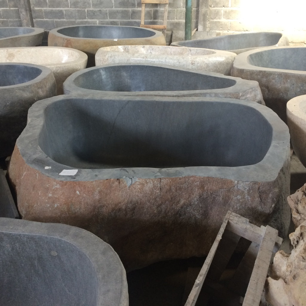 Die Wanne wird in Bali von Hand aus Stein gefertigt.